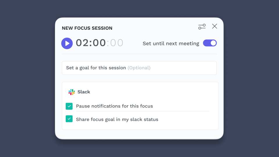 Builds on the startup's early ideas around intention-setting and external distraction surpression.