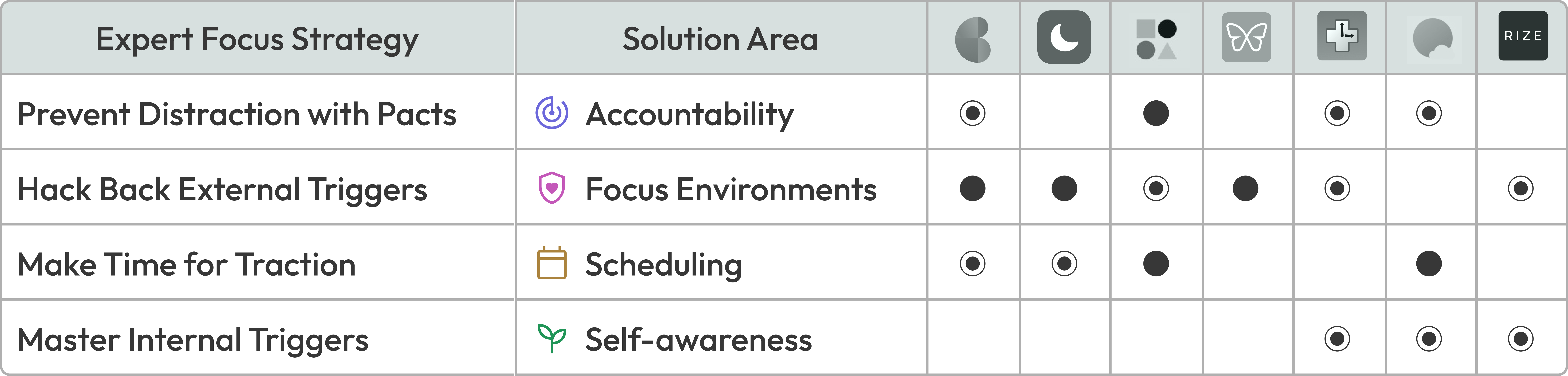 Most focus tools address external distractions, leaving internally driven focus breakdowns unaddressed.