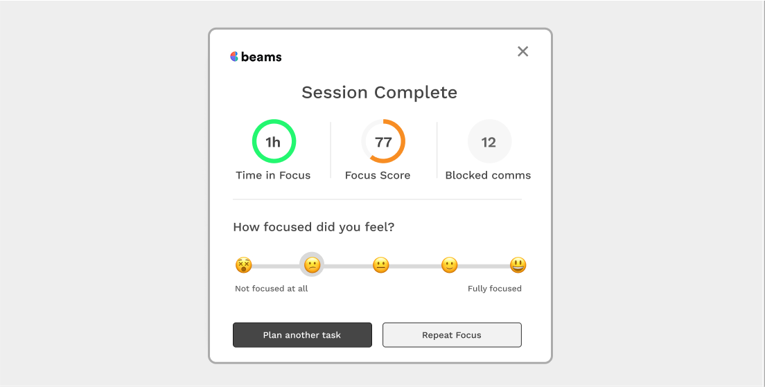 Beams was a pre-seed productivity startup with a mission to “improve focus and reduce distraction”. Their early product combined a calendar with lightweight meeting tools and a Focus Mode designed to help knowledge workers carve out distraction-free time.